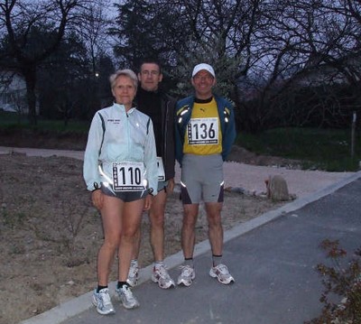 Une approche de 4km, puis 8 boucles de 12km le long de l’Isère et au pied du massif de la chartreuse.Peut ètre que le pic de pollution affiché sur l’autoroute proche a fait baisser le niveau des performances? .Néanmoins les suiveurs à vélo ainsi que sylvie, nous avons apprécié une belle bagarre et une course magnifique ou les podiums ne se jouèrent que dans la dernière boucle ; aussi bien chez les hommes que chez les femmes.Le vainqueur, Albert VALLEE ne prenant la tête qu’à 3Km de l’arrivée. Chez les féminines Emilienne ROGGGY 1ère Féminine effectuait 15 derniers Km époustouflants.Quand à Chantal HATON à l’amorce du dernier tour, elle prenait le dessus sur la senior et favorite de l’épreuve Anne Fontaine pour prendre une superbe 2ème place et 1ère V2. Franck PLANCON effectua une course très régulière :JC PAROLI qui avait pris les devants coinçait au 60ème(Problème musculaire)rétrogradait, Claude AUBRY et Christian VELY pourtant très proche des copains de Club avaient un gros coup de pompe au 75ème pour le premier et au 85ème pour le second ,néanmoins ils termineront courageusement cette épreuve.