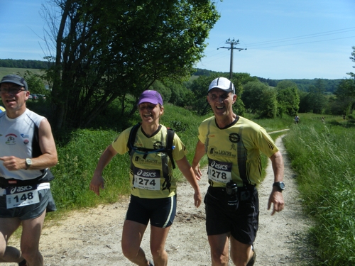 Au bout de quelques kms, je double Bruno HEUBI qui nous redoublera au 8ème km dans la longue descente bétonnée vers Chamery…il va falloir retravailler un peu la vitesse.