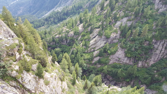 Parti en 2ème partie du peloton, traversée de Courmayeur et c’est très rapidement la 1ère montée vers le col Checrouit (1947m) par un large chemin et donc aucun bouchon.