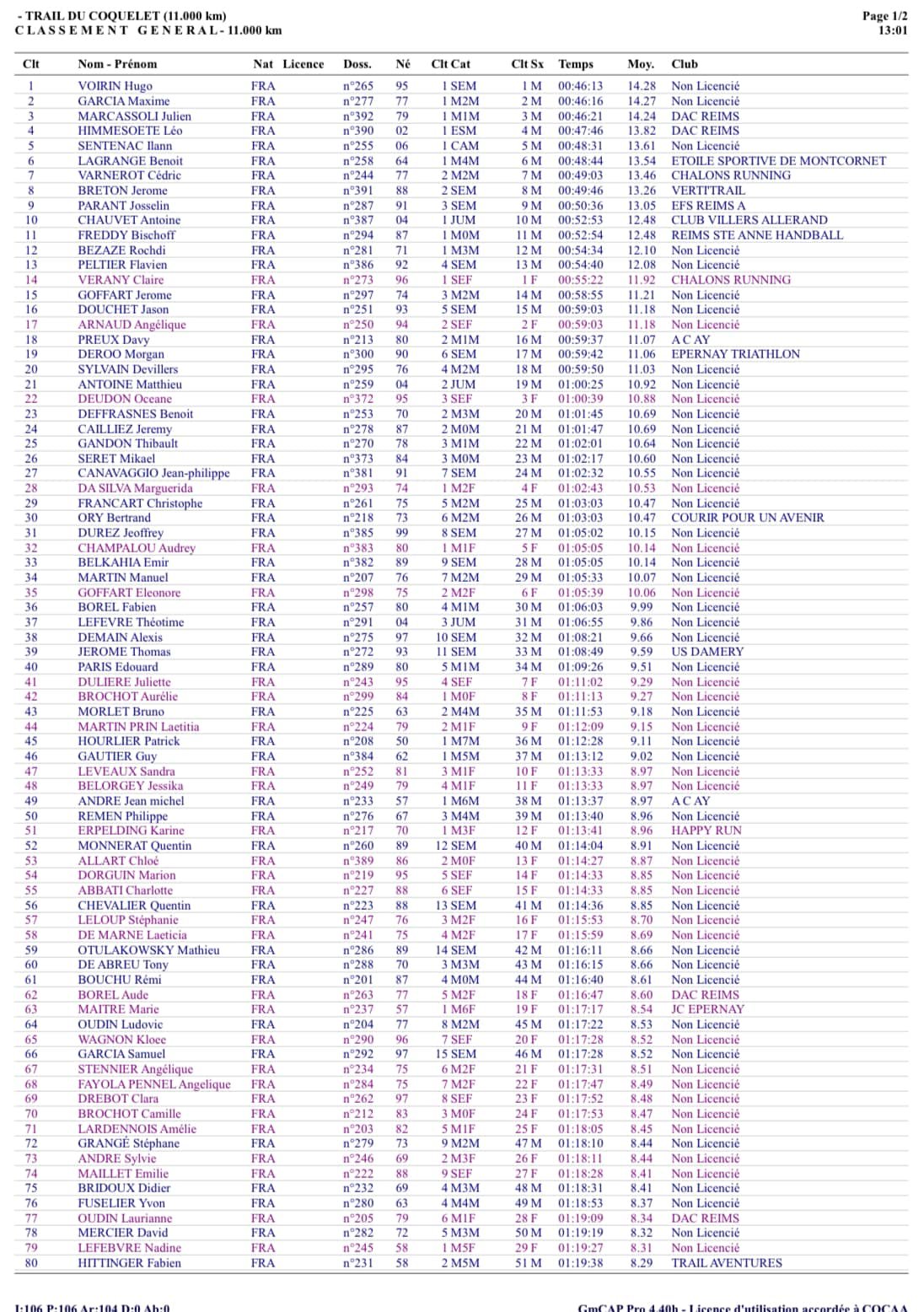 | 1244 | Nicolas COLIN | 42’46 » | |