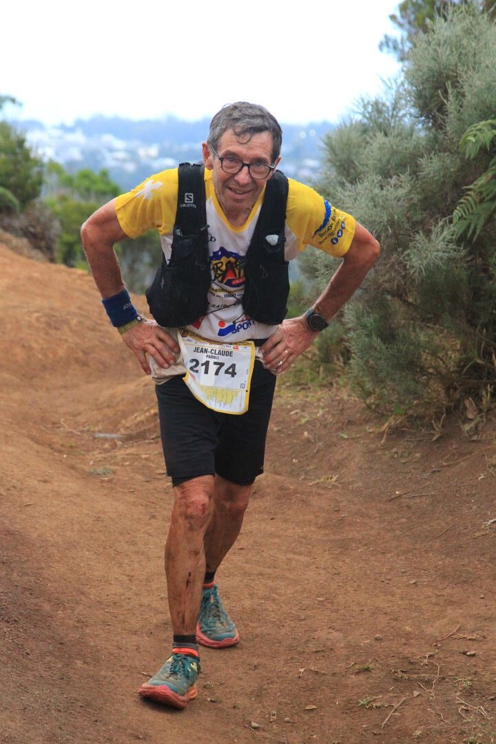 Coté tenue : compte tenu de la chaleur, aucun changement à la 1ère base de vie à Cilaos (72ème km ) et un seul changement de chaussettes à la seconde base de vie à Deux Bras (127ème km ) …..Une seule tenue pour les 2 jours et 2 nuits avec le Tee shirt de l’organisation (obligatoire en début et fin de course) pendant toute l’épreuve. Aucun vêtement supplémentaire ou manchettes la nuit, même à 2000m….because la température élevée