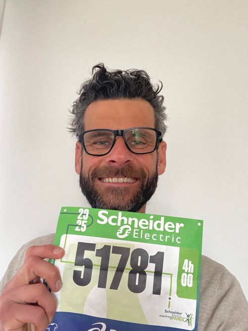 Après m’avoir accompagnée sur le 10 km d’Épernay il y a un an, il m’accompagne cette année sur le Marathon de Paris, et ce sera aussi son tout premier marathon !