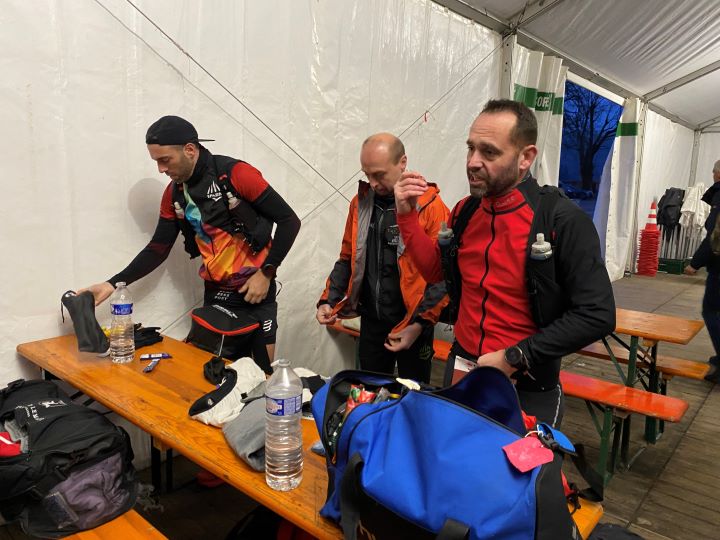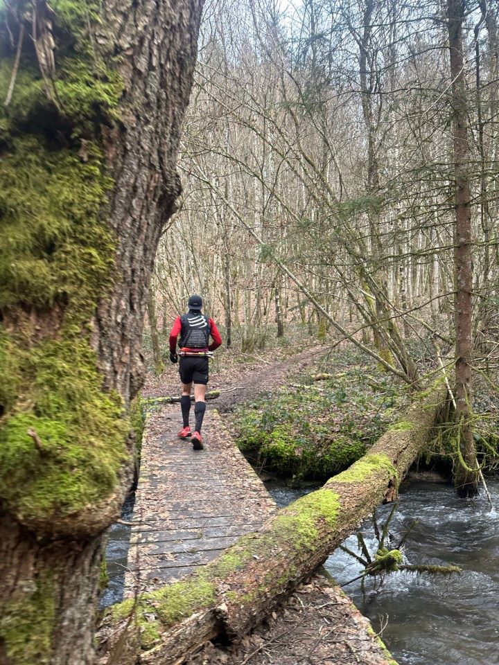 Départ à 5h du matin, arrivée à 7h15 et départ du 50km à 8h. La température est légèrement négative mais sans trop de vent. Les 3 épreuves se déroulent sur de beaux parcours variés, sans passages très techniques mais avec quand même des portions bien boueuses mais jamais très longues, sans oublier les traversées de ruisseaux avec la météo très pluvieuse en ce moment.