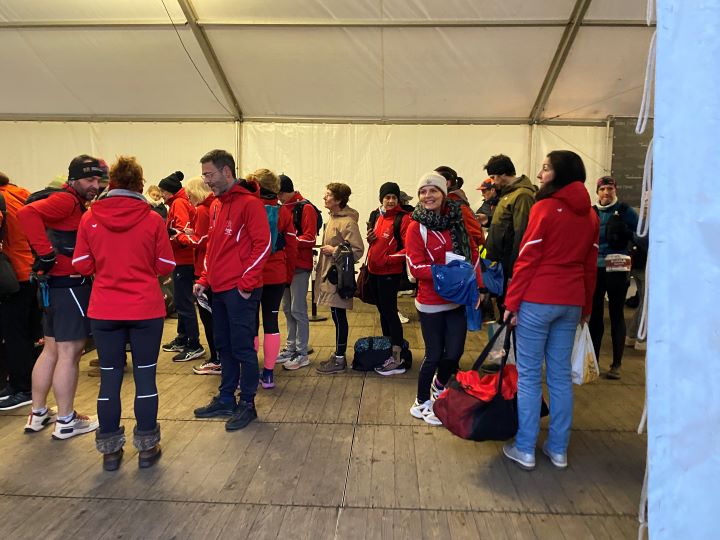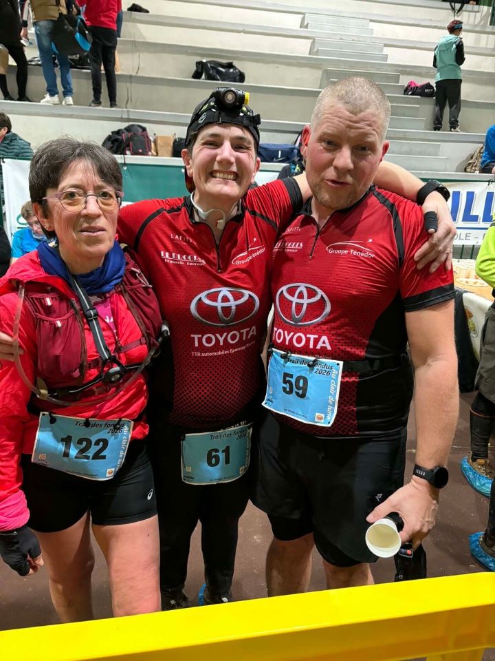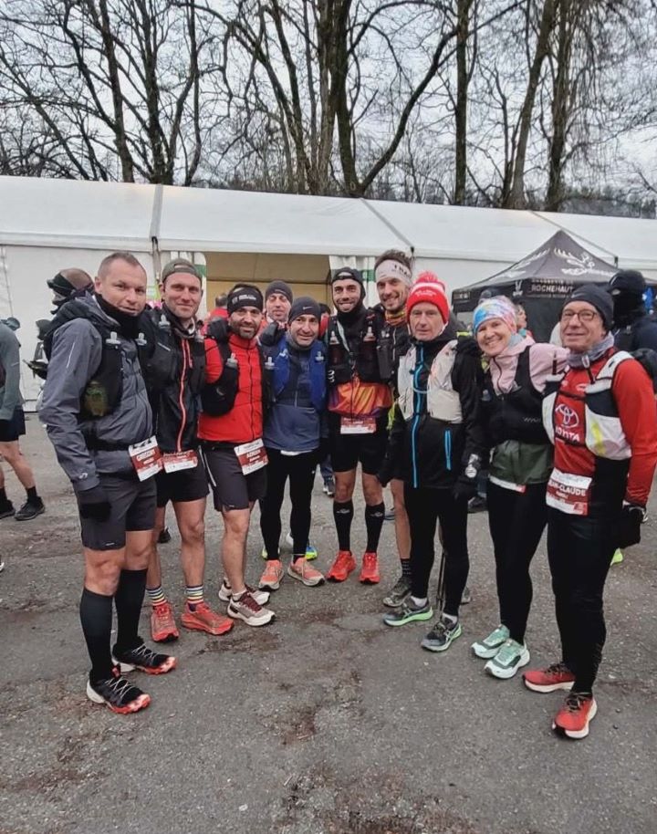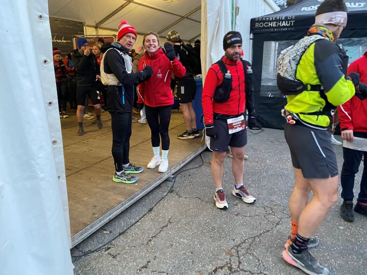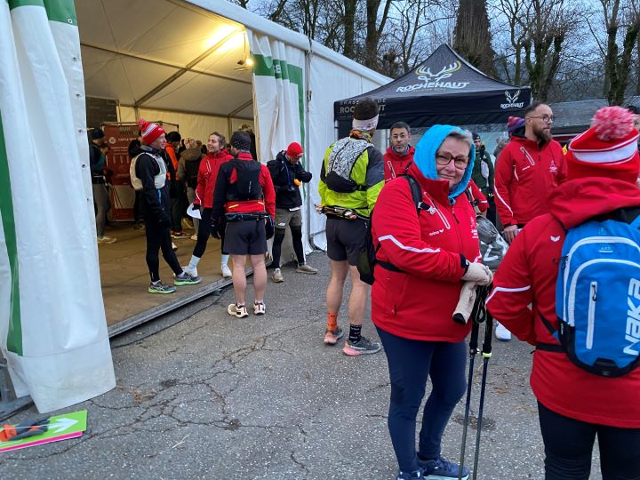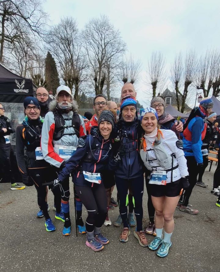 Même si tout le monde est un peu KO, on rigole déjà. Arrivée sur place, changement express pour ceux du 50 km dans le froid mais dans la bonne humeur… et hop départ, sans réfléchir, portés par les encouragements du Jogging Club Epernay-Champagne