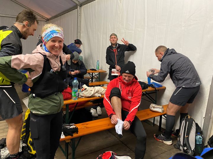Km 90 ravitaillement, la pluie s’est arrêtée j’en profite pour bien me réalimenter et me nettoyer et je repart.