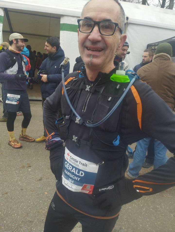 Je démarre la course en milieu de peloton tout se passe bien, j’ai des bonnes sensations. km 20 une fine pluie a commencé à nous taquiner rien de bien méchant jusque-là ça, durera 3h.