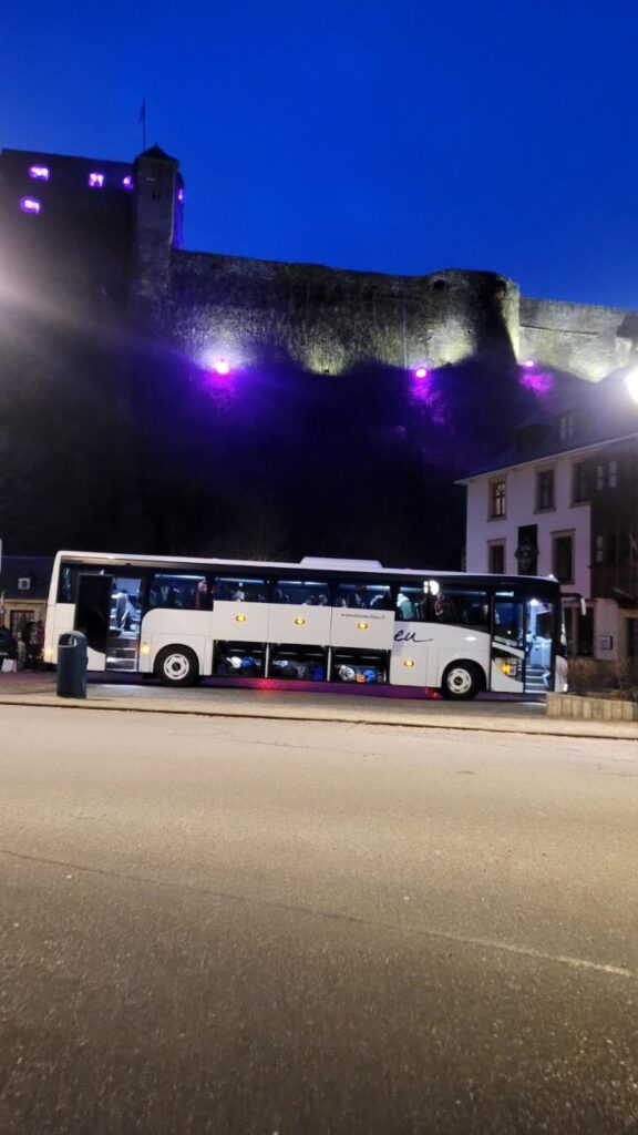 41 coureurs du club dans le bus, 5 forfaits, 2 accompagnateurs, 2 abandons suite blessure….bon rétablissement à José et Amélie.